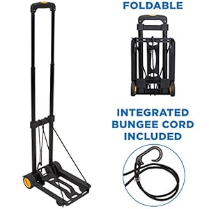 Mount-It! Folding Luggage Cart and Dolly | 77 Lb Capacity | Portable Lightweight Luggage Trolley Cart with Telescoping Handle and 4 Rubber Wheels | Steel Frame